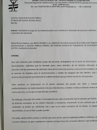 En su escrito, SGTEX informa a Función Pública de que está recibiendo quejas del personal, trabajadores de la Junta de Extremadura que formó parte, como miembro, de los distintos tribunales de selección y de las comisiones de valoración, tanto de los turnos de ascenso y concursos de traslados, así como de la comisión de traslados para la reestructuración y cambio de categoría del Plan INFOEX, ante la ausencia de percepción económica de las indemnizaciones que por dichas tareas les corresponden.