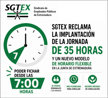 SGTEX reclama con la implantación de la jornada de 35 horas, un nuevo modelo de horario flexible en la junta de Extremadura