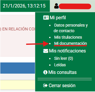 PASO 1– Deben seleccionar “Mi documentación” en su menú desplegable de perfil