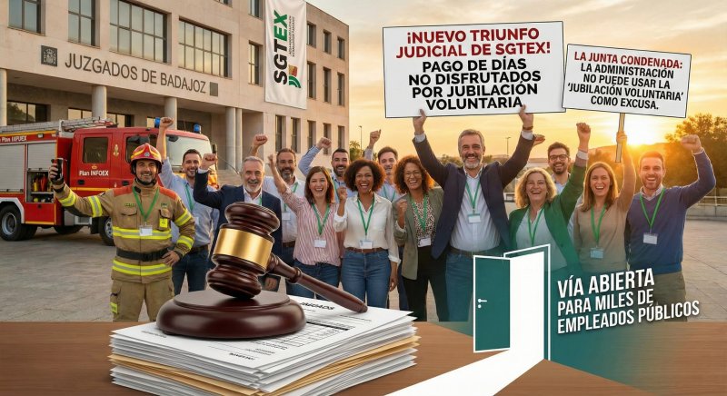 SGTEX logra una nueva victoria judicial impidiendo a la Junta de Extremadura negar el pago de días no disfrutados por jubilación voluntaria